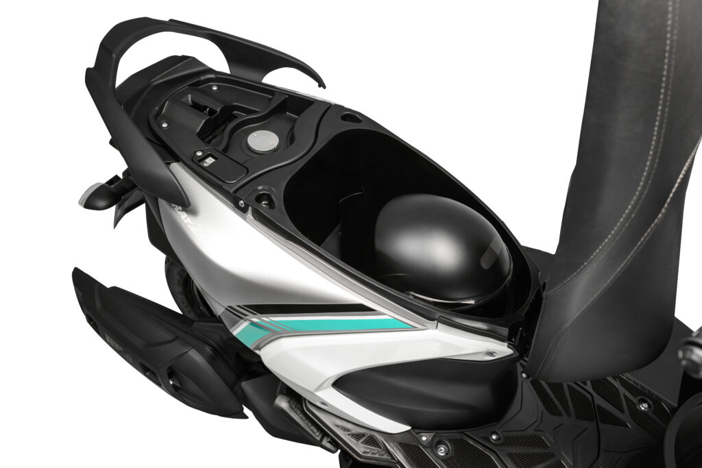 O modelo também aposta em conforto e praticidade, com assento em dois níveis, posição de pilotagem relaxada e espaço sob o banco de 21 litros, suficiente para acomodar um capacete fechado pequeno.